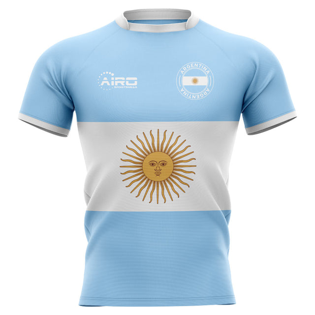 Brand new 2019 2020 Argentina Concept Flag Rugby Shirt available to buy in adult sizes S, M, L, XL, XXL, XXXL, 4XL, 5XL and junior sizes small boys, medium boys, large boys, XL Boys.
