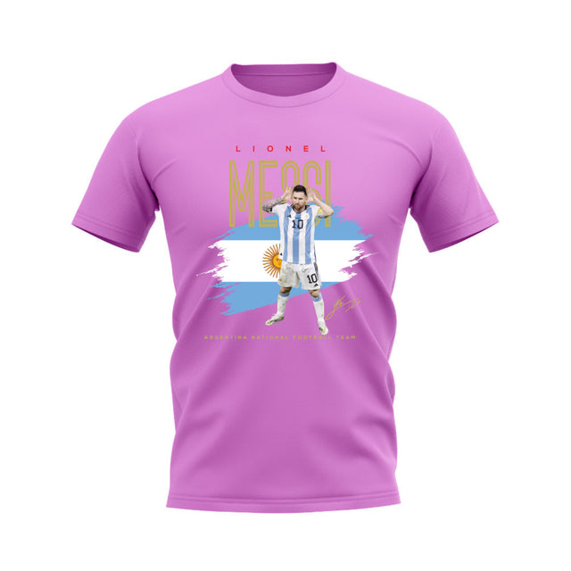 Lionel Messi Argentina Football Celebration T-Shirt (Pink)