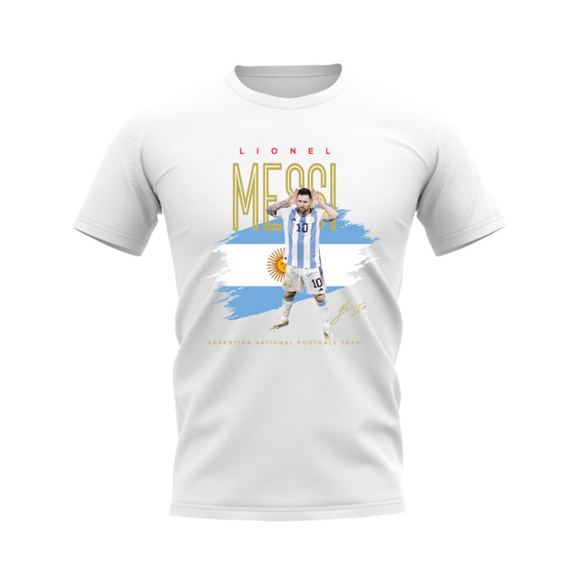 Lionel Messi Argentina Football Celebration T-Shirt (White)