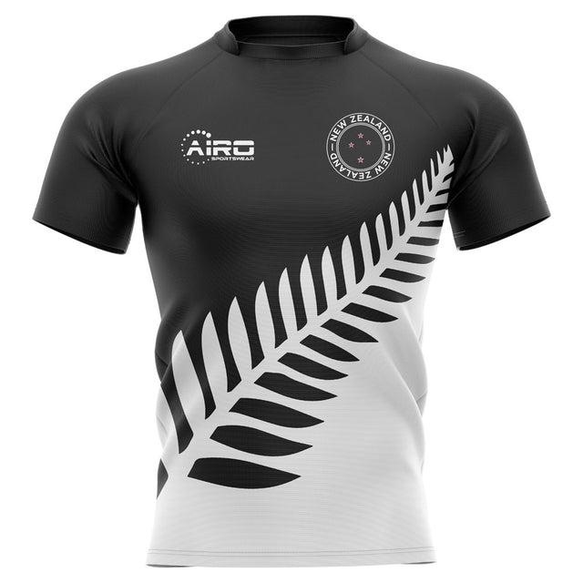 This rugby jersey is a fantasy kit and is an alternate un supporters jersey for New Zealand All Blacks.