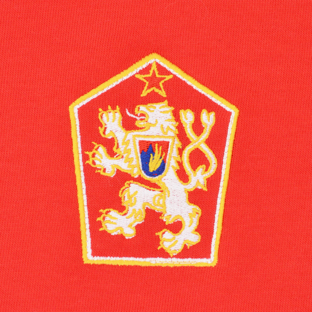 Czechoslovakia 1976 European Champions Childrens Shirt This is the shirt made famous by the floating leaf penalty with which Anton Panenka beat Sepp Maier at the end of the penalty shoot out in the 1976 European Championship final held in Belgrade. The Czechs had not been favoured to win through their qualifying group (containing England) but they won a tortuous way through to the final, surviving a last minute equaliser in Belgrade before Panenka's famous spot kick turned German faces as red as the Czech shirts.