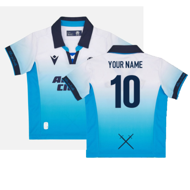 Official Your Name football shirt. This is the NEW Scotland Rugby Away Little Kids Mini Shirt for the 2024-2025 season which is manufactured by Macron and is available in all Childrens sizes.