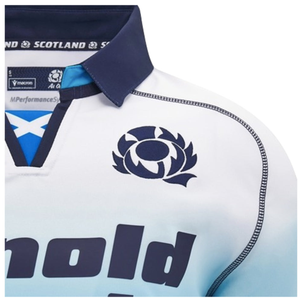 This Macron Womens Scotland Away Rugby Shirt is ideal for supporting Scotland this season from Murrayfield and beyond. It is perfect for wearing as part of your every-day style while supporting the team. The blue and white rugby shirt is made with breathable fabric to ensure a comfortable fit. The shirt features new bold blue and white design so you can stand out while supporting the team. The upper chest of the shirt proudly shows off the embroidered Scottish Rugby over the heart alongside the Macron logo on the upper left chest. With supporter in mind this shirt provides a comfortable fit.