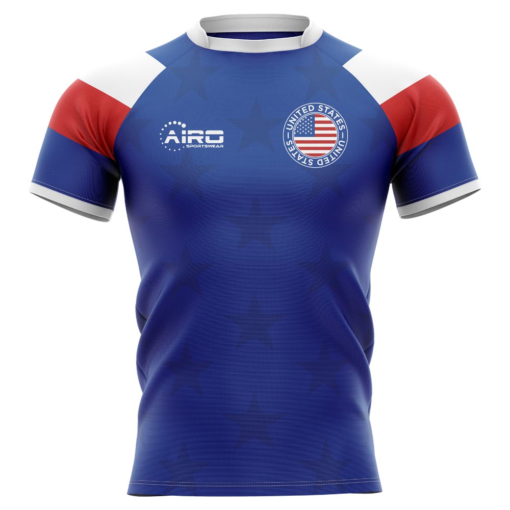 Brand new 2019 2020 United States USA Concept Home Rugby Shirt available to buy in adult sizes S, M, L, XL, XXL, XXXL, 4XL, 5XL and junior sizes small boys, medium boys, large boys, XL Boys.