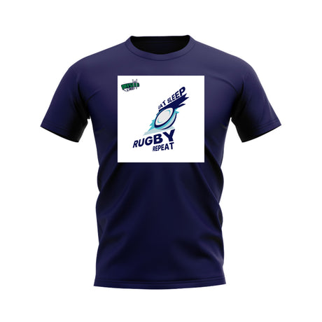 Eat, Sleep, Rugby Repeat T-Shirt - Version 6 (Navy/White)