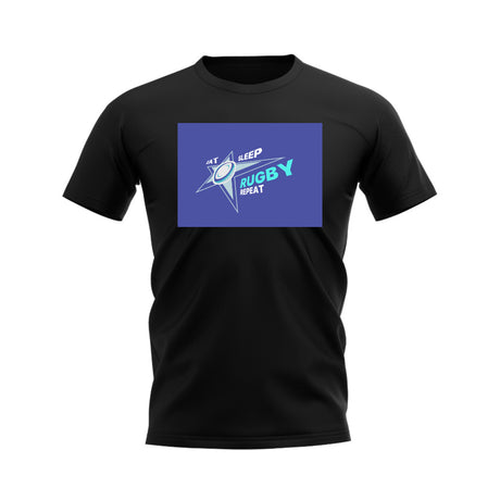 Eat, Sleep, Rugby Repeat T-Shirt - Version 10 (Black/Blue)