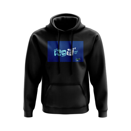 Eat, Sleep, Rugby Repeat Hoody - Version 9 (Black/Blue)