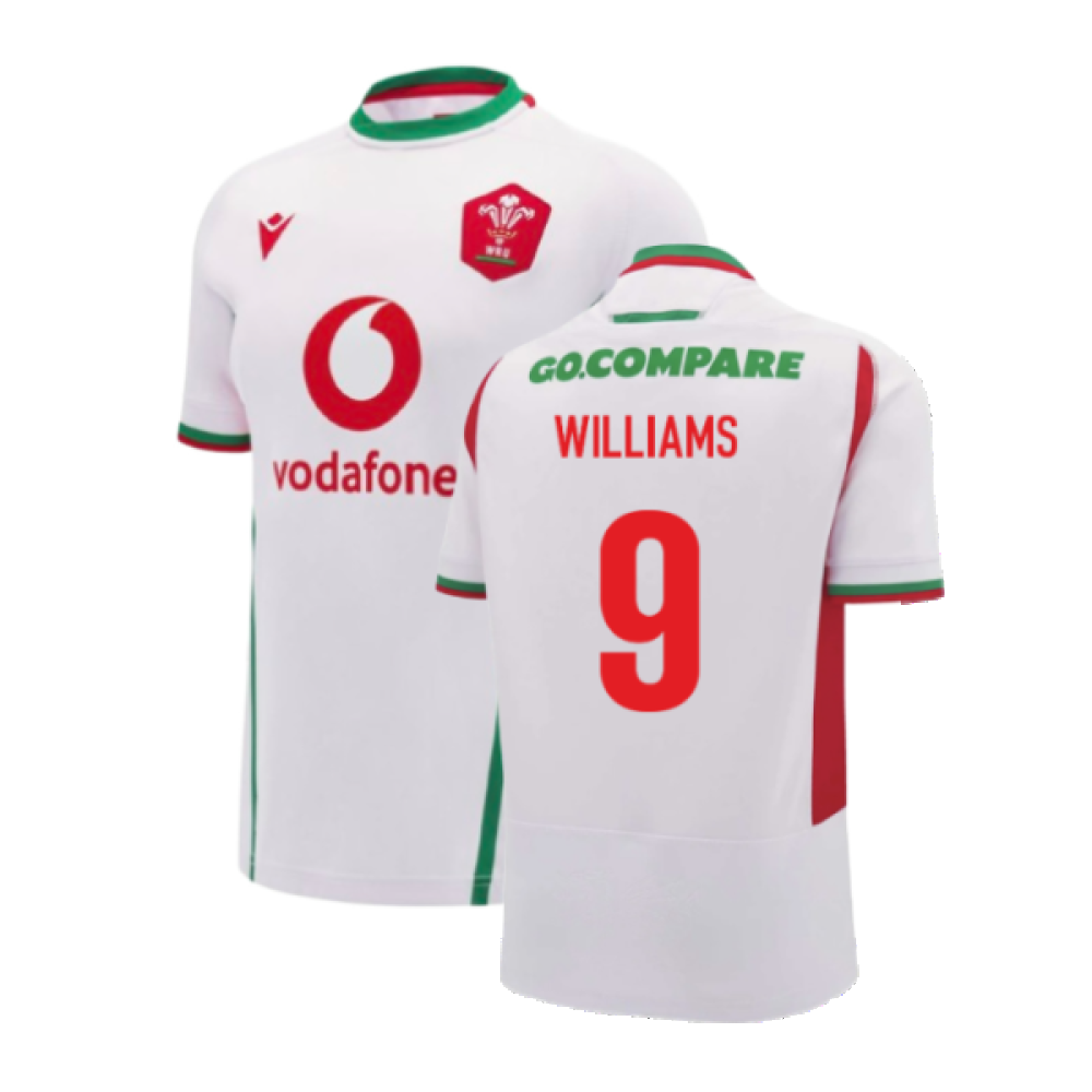 Official Tomos Williams football shirt. This is the NEW Wales Rugby Away Replica Shirt (Womens) for the 2024-2025 season which is manufactured by Macron and is available in all Adult sizes.