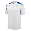 The away jersey of the Samoan 15-a-side rugby national team, designed by Macron for the 2023-2024 season, is tinged with white. The graphics are plain-coloured and on the right shoulder are the five stars that form the club's logo. The shirt features a regular fit and the Eco fabric guarantees breathability and consistent coolness. White details on the V-neck and sleeves further enhance the garment. Ready to support your national squad with a sensational look?