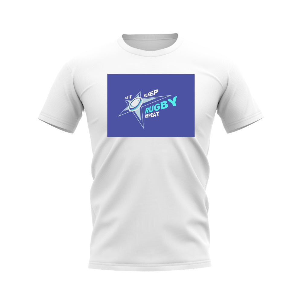 Eat, Sleep, Rugby Repeat T-Shirt - Version 1 (White/Blue)