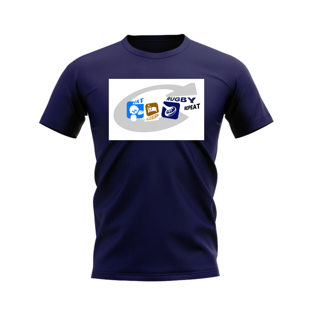 Eat, Sleep, Rugby Repeat T-Shirt - Version 12 (Navy/White)
