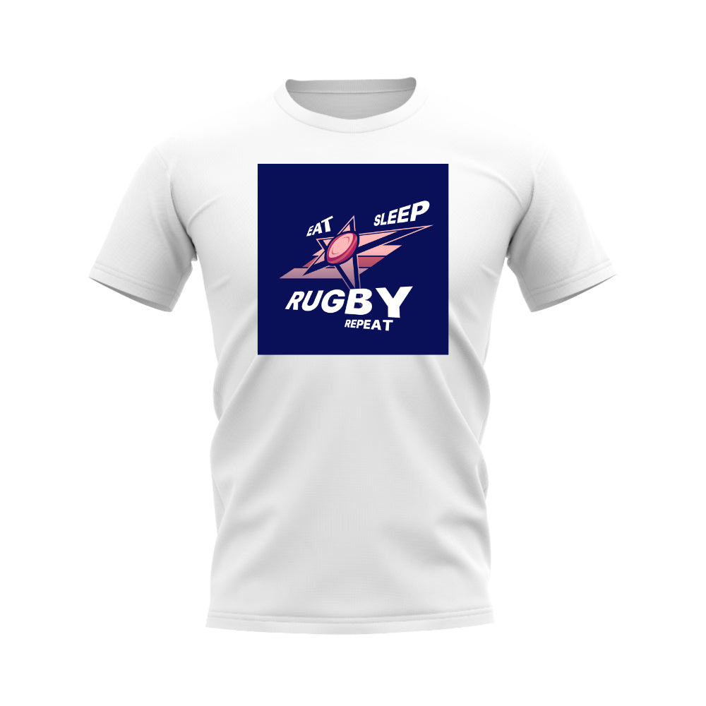 Eat, Sleep, Rugby Repeat T-Shirt - Version 2 (White/Navy)
