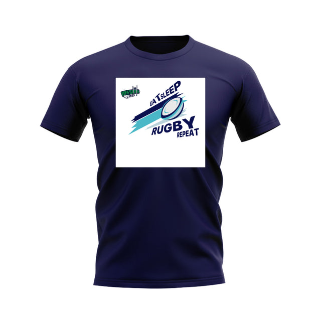 Eat, Sleep, Rugby Repeat T-Shirt - Version 7 (Navy/White)