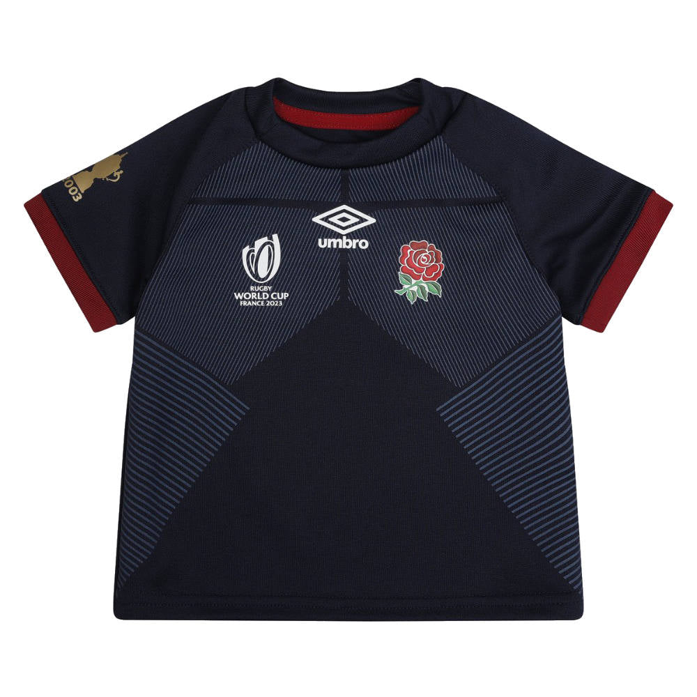 Official Lawrence Dallaglio football shirt. This is the NEW England RWC 2023 Alternate Replica Rugby Baby Shirt which is manufactured by Umbro and is available in all Childrens sizes.