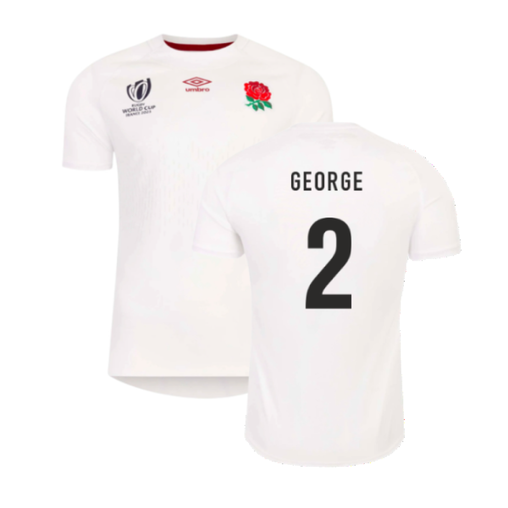 Official Jamie George football shirt. This is the NEW England RWC 2023 Home Rugby Jersey (Kids) which is manufactured by Umbro and is available in all Childrens sizes.