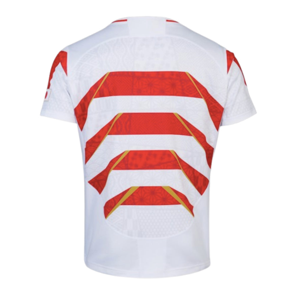 Inspiration comes from KABUTO, a warriors helmet worn on the battlefields of the Sengoku Period, and later became a part of the Samurai armour. Traditional Kissyo patterns are said to bring good fortune within the red and white hoop design, whilst a subtle lily (the national flower of France) is also featured in a humble nod to the RWC 2023 host nation.
